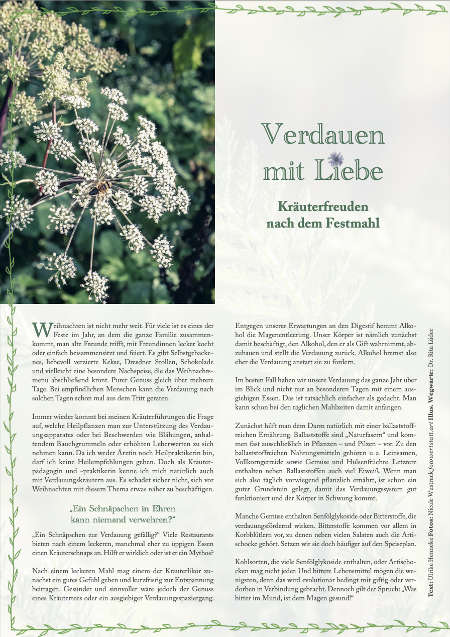 Diesmal sind Bitterstoffe das Thema. Die Kräuterpädagogin Ulrike Hennecke von “Junges Grün” hat den Text für die Holunderelfe geschrieben.